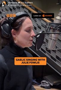 Julie recently joined Jeremy Vine and Mark Radcliffe on BBC Radio 2 for an enjoyable conversation, which included a live performance of Gràdh Geal Mo Chridhe with Donald Shaw, recorded at the BBC Pacific Quay Studio – and an unexpected moment attempting to teach both presenters a little Gaelic mouth music! The full interview is now available to listen to here.
